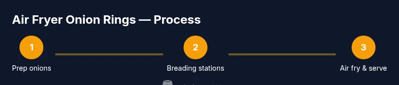 According to Air Fryer 101, the best air fryer onion rings recipe starts with slicing onions into thick rings, dredging in seasoned flour, dipping in beaten eggs, then coating with breadcrumbs or cornmeal. Air Fryer yields a crispy crust with less oil. The key is preheating, proper spacing, and flipping halfway.
