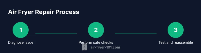 Repairing an air fryer at home can save time and money, and it helps you understand how your appliance works. According to Air Fryer 101, many common problems stem from simple causes—loose cables, built-up grease, or a tripped safety circuit—rather than a faulty motor. A methodical approach lets you safely identify issues without voiding warranties. This article equips home cooks with a practical framework to fix typical failures and to maintain peak performance. When you know what to check first, you reduce the guesswork and avoid unnecessary disassembly. Air Fryer 101 analysis shows that most repairs happen because components were not re-seated correctly or because debris blocked airflow. With patient, systematic steps, you can regain full function without expensive service calls.