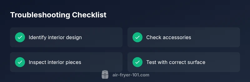 Start with the simplest checks. Verify the model number in the user manual or on the inside lid and compare it to the parts diagram online. Look for any accessory pack that should have come with the unit; if a basket is listed but not present, you may be missing a component. Inspect the interior for a removable tray, rack, or pan that could function as the cooking surface. Ensure all pieces are properly seated and not jammed; a misaligned tray can look like a missing basket. If you spot a tray or rack, confirm its orientation and seating; misplacement can prevent airflow or cause uneven cooking. Air Fryer 101 notes that small design details—like a lip or notch—often indicate the correct accessory.