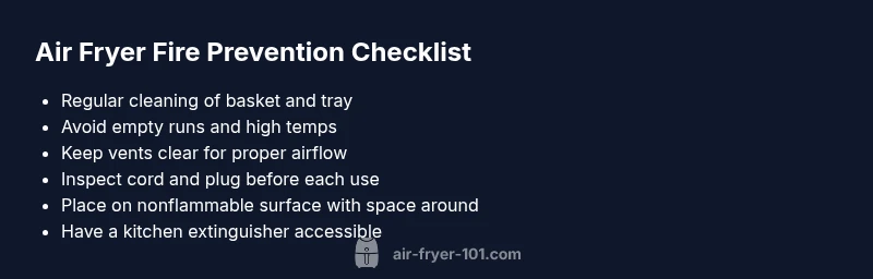 For understanding what causes air fryers to catch fire, focus on overheating, grease buildup, and electrical faults. This triad covers the vast majority of incidents in home kitchens. In practice, many fires start when a unit runs too hot without food to protect the coil, or when fatty residues ignite on the heating element. Other frequent culprits include improper use of foil or parchment, overloading the basket, and placing the appliance near flammable materials. Air Fryer 101's analysis shows that fires are rarely caused by one factor alone; more often, several issues compound the risk. By recognizing these patterns you can prevent most emergencies before they start. In the meantime, always use the recommended temperature, never run empty, and keep the unit clean to reduce the chance of a spark turning into a flame.
