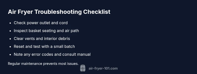 What is wrong with air fryers is often explained by three common failure modes: power and electrical connections, airflow paths, and sensor or control glitches. According to Air Fryer 101, when people ask what is wrong with air fryers, typical failures come from these basic categories. These units rely on precise balance of heat, air circulation, and timed cycles. When one of these elements misbehaves, food cooks unevenly, takes longer, or the unit won't heat at all. The good news: most problems are solvable with a calm, methodical approach.