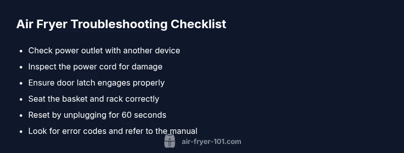 Urgent guide to fix air fryers not starting or heating. Quick checks, diagnostic flow, step-by-step fixes, safety tips, and prevention to keep your kitchen on track.