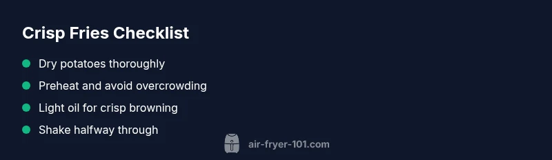Why are my air fryer fries soggy? The short answer is moisture and airflow. When surface moisture remains on freshly cut potatoes, that moisture turns to steam inside a closed basket, and the fries steam rather than crisp. According to Air Fryer 101, soggy fries typically occur when three factors align: excess surface moisture, insufficient air circulation, and uneven heat transfer. Overcrowding the basket compounds the problem: steam from crowded pieces blankets nearby fries and prevents browning. Recognizing these forces helps home cooks target the exact fix quickly, saving time and avoiding wasted batches. In practice, focus on drying thoroughly, avoiding stacking, and ensuring the fryer is hot enough to vaporize moisture fast.